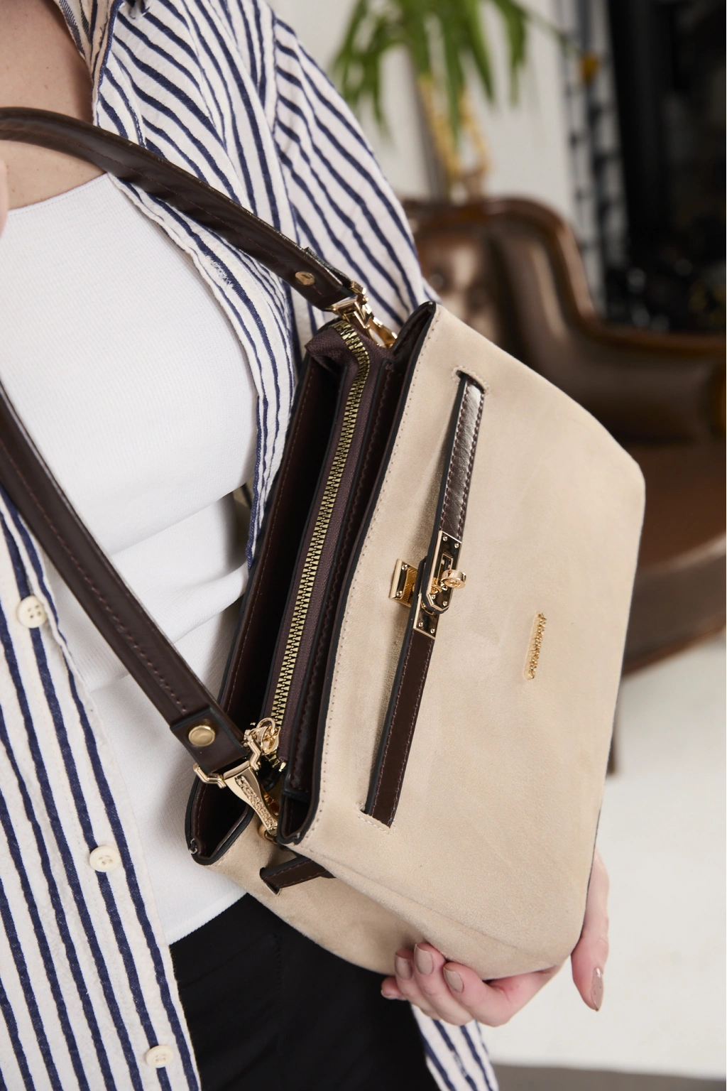 Renk:Ana Gövde K.Bej Süet Detay Kahve